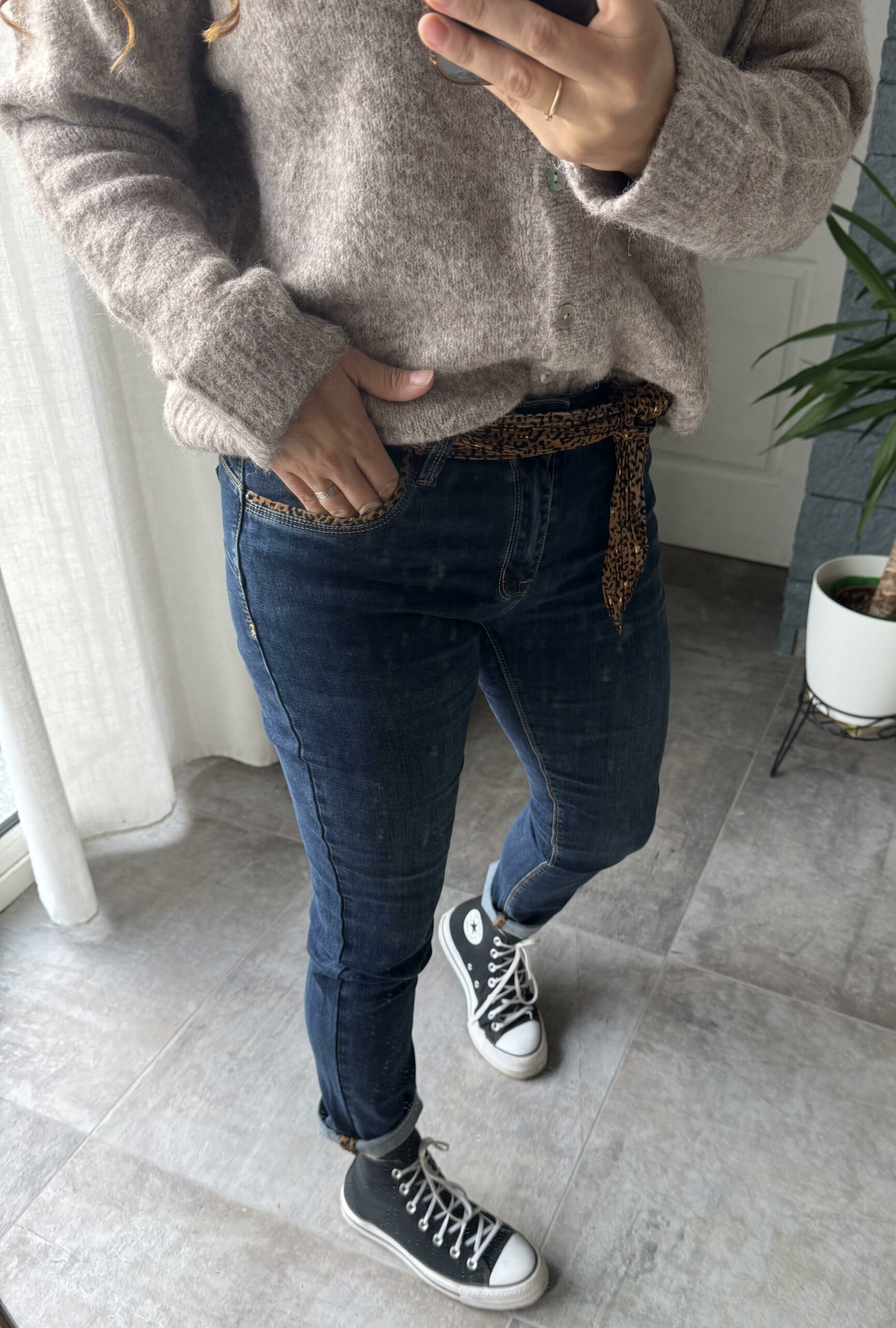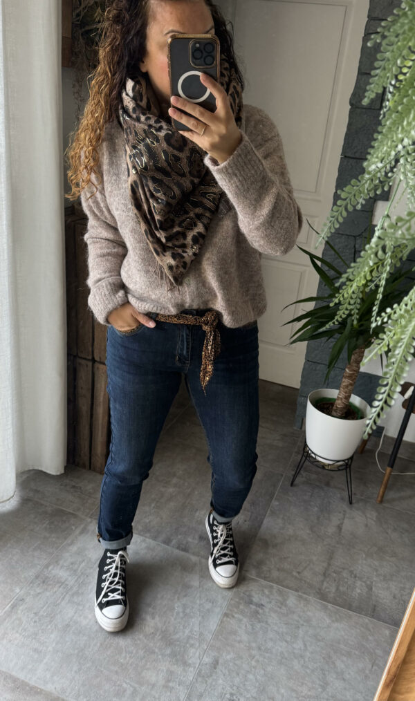 ▪️Jean coupe droit avec foulard léopard ( possible de le retirer )